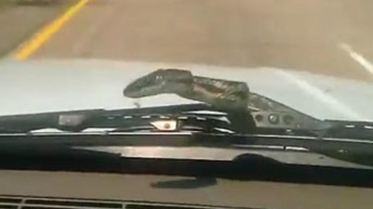 Saatte yaklaşık 110 kilometre hızla giden otomobilin motor kaputundan sürünerek çıkan bir yılan ön camda gezinmeye başladı.