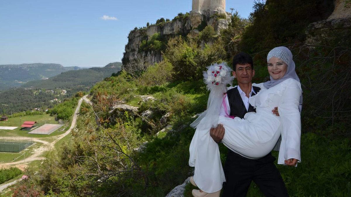 Okan ÇALIŞKAN/ÇAMLIYAYLA(Mersin), (DHA)- MERSİN’in Çamlıyayla ilçesinde 1500 rakımdaki yaklaşık bin yıllık tarihe sahip olan Namrun Kalesi'nin önünde ilçenin tanıtımına katkı sağlanması amacıyla nikah kıyılmaya başlandı.