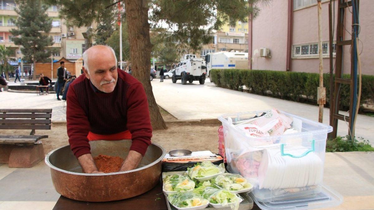 Mardin’in Kızıltepe ilçesinde çiğ köfte ustası Şerif Algan 35 yıldır yoğurduğu ve satışını seyyar tezgahında kendi eli ile yaptığı çiğ köftesi ile geçimini sağlıyor.