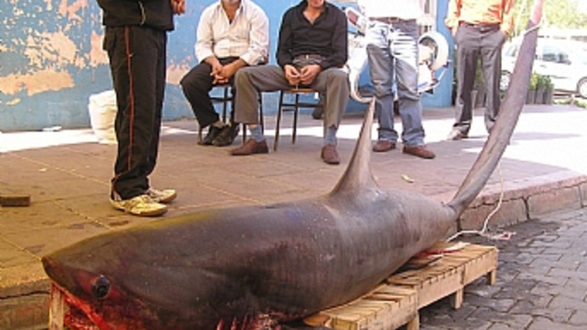 Edinilen bilgiye göre Çanakkale açıklarında avlanan Aydınlı balıkçı kardeşler Cengiz ve Sezgin Suluk'un ağlarına 230 kilogram ağırlığında 4 metre uzunluğunda dev bir camgöz köpek balığı takıldı. Dev camgöz köpek balığını yakaladıktan sonra Aydın'a getiren balıkçı kardeşler vatandaşların camgöz köpek balığı ile ilgili bilgisini arttırmak amacıyla hemen satmak yerine Aydın Merkezdeki Soğukkuyu balık pazarında dev köpek balığını sergilediler. Aydınlı balıkçı kardeşler Cengiz ve Sezgin Suluk dev köpek balığını bir süre sergiledikten sonra mezat usulü satacaklarını belirttiler.