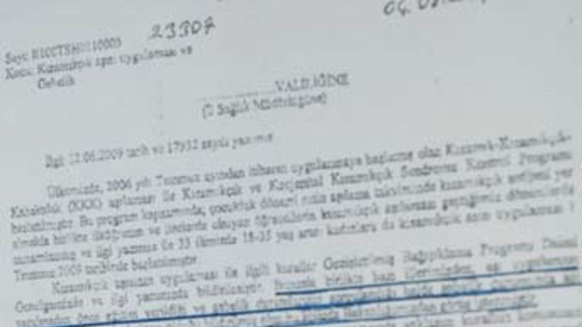 Sağlık Bakanlığı Temel Sağlık Genel Müdürlüğü’nün konuyla ilgili olarak 4 Ağustos tarihinde Genel Müdür Yardımcısı Mehmet Ali Torunoğlu imzasıyla başta İzmir olmak üzere 33 ilin valilik ve sağlık müdürlüklerine konuyla ilgili uyarı yazısı gönderdiği ortaya çıktı. Binlerce kadın aşılandıktan sonra gönderilen yazıda, “Bazı illerde gebelik durumunda aşı uygulaması yapılan kadınlar olduğu bildirilmiş olup, bu konuda Bakanlığımızdan görüş istenmiştir. Gebelik durumunda kızamıkçık aşısının uygulanması, herhangi bir yan etki göstermemiş olsa bile Konjenital Kızamıkçık Sendromu teorik riski nedeniyle yapılmamalıdır ve bu durum program uygulama hatasıdır.” denildi. Hatanın resmen kabul edildiği yazıda, hamileyken aşı yapılan kişilerin isim ve adres bilgilerinin de kayıt altına alınması istendi.