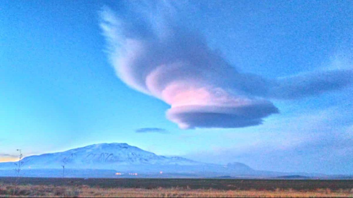 Adilcevaz’da dün akşam saatlerinde görenleri şaşırtan ilginç bir doğa olayı yaşandı. İlçe sınırları içerisinde bulunan 4 bin 58 metre yüksekliğindeki Türkiye’nin üçüncü yüksek dağı olan Süphan Dağı yakınlarında oluşan sıra dışı bulut tabakasını görenler şaşkınlık yaşadı. İlçe merkezinden rahatlıkla görünen ve gün batımına doğru gökyüzünde ortaya çıkan ilginç bulut görüntüsünü vatandaşlar cep telefonlarıyla kaydetti.