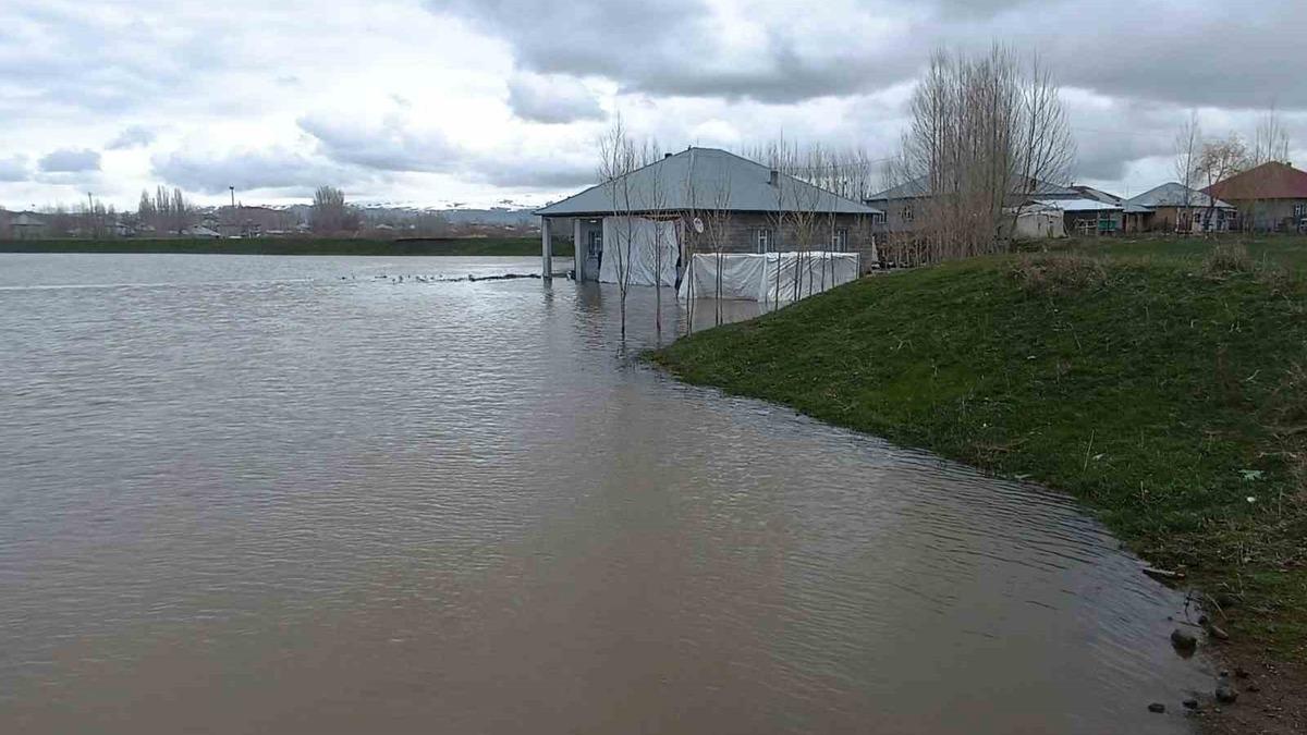Patnos ilçesinde etkili olan sağanak yağışlar, eriyen kar sularıyla birlikte derelerde su seviyesinin yükselmesine neden oldu.