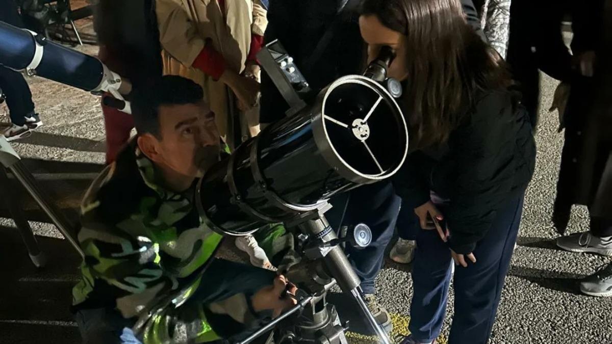 Eskişehir’de Ahmet Sezer Ortaokulu’nda düzenlenen ’Kutup Yıldızım Aile: Gece Gökyüzü Gözlem Etkinliği’ çerçevesinde, öğrenciler teleskop ile uzayın derinliklerini gözlemledi.
