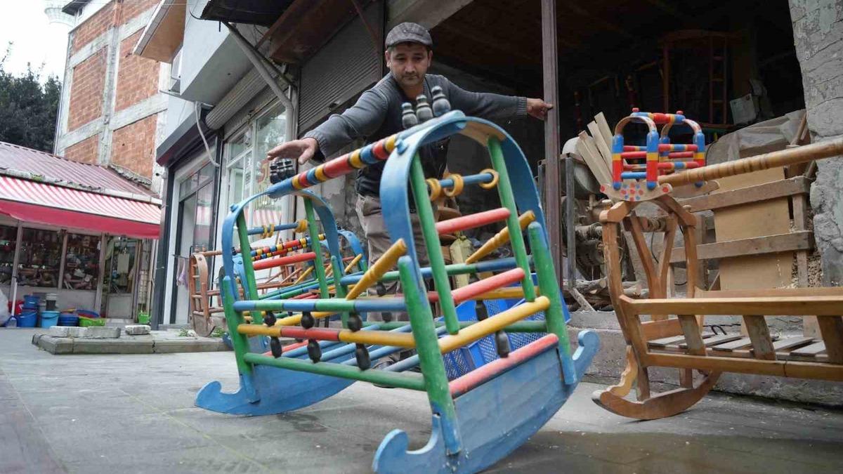 İlçenin tek ahşap beşik ustası 44 yaşındaki Hacı Salih Özşahin, "Kimi çocuklar uyumadığı zaman aileler bu beşikleri tercih ediyor" dedi.