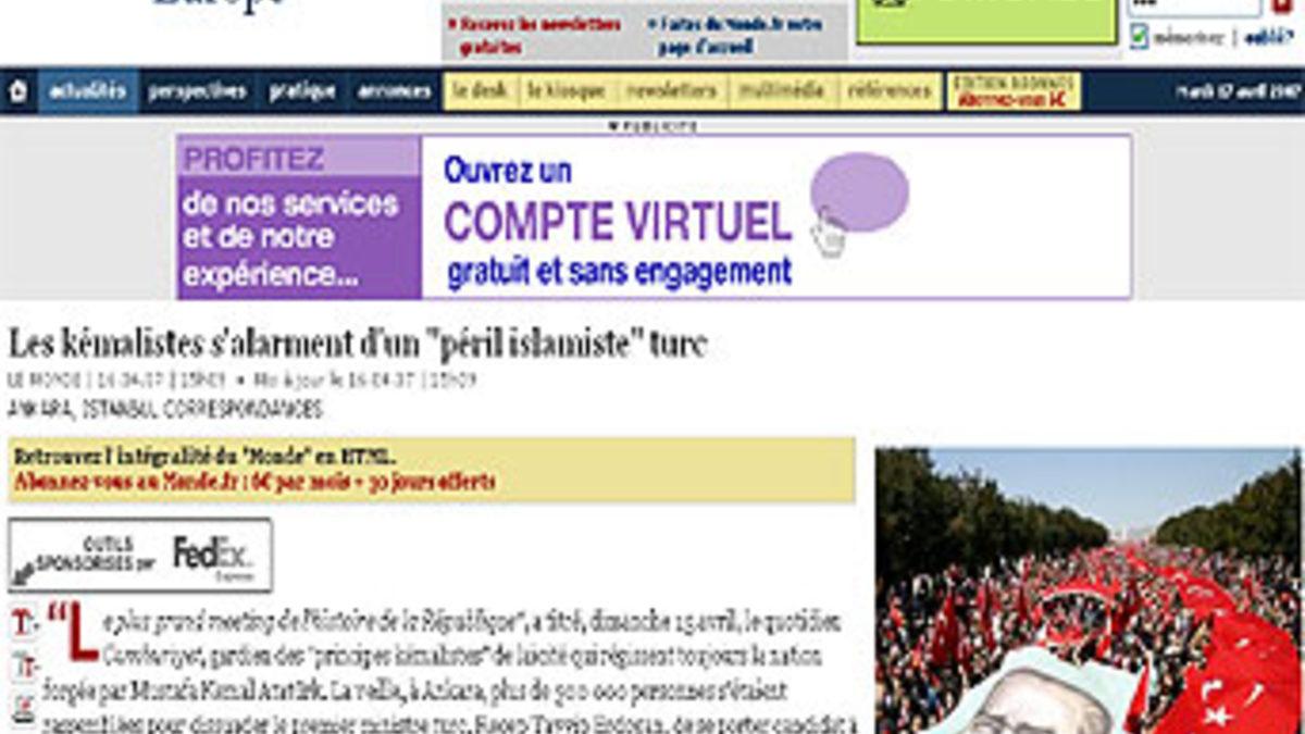 Le Monde, Başbakan Recep Tayyip Erdoğan'ın kendisini "demokrat muhafazakar" olarak nitelendirdiğini ancak karşıtlarınca cumhurbaşkanlığı yetkileri ile güçlendirilmesi halinde ülkenin laik sistemi yıkacak bir "İslamcı" gibi görünmeye devam ettiğini belirtti. 2003 yılından bu yana Başbakan olan Erdoğan'ın türban yasağını kaldıramadığına dikkat çeken Le Monde, ancak Erdoğan'ın cumhurbaşkanı olması halinde seçmenlerinin bu talebini yerine getirebileceğini kaydetti. Le Monde, Tandoğan'daki mitinge katılanların "Erdoğan, ülkeyi Suudi Arabistan'a dönüştürmek istiyor" yolundaki kaygılarını da aktardı. Göstericilerin dile getirdikleri suçlamalardan daha sertlerinin de "ülkenin Kemalist üst düzey yetkililerince" de ifade edildiğini öne süren gazete, bu çerçevede Cumhurbaşkanı Ahmet Necdet Sezer ve Genelkurmay Başkanı Orgeneral Yaşar Büyükanıt'ın açıklamalarına değindi.