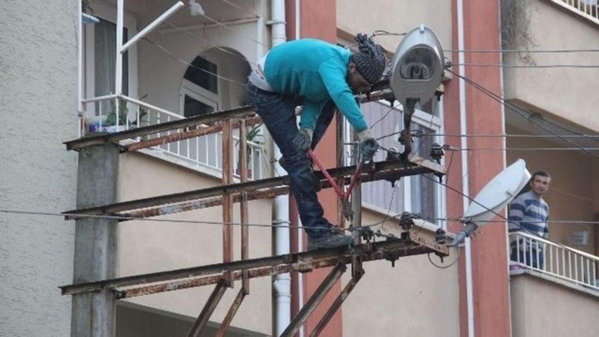 Giresun'daenerji nakil hatlarını yer altına alma çalışmaları kapsamında cadde ve sokaklarda bulunan elektrik direklerinin sökümü iş güvenliğini bir kaz daha gündeme getirdi. Gemilerçekeği Mahallesi'ndeTozlu sokak üzerindeki enerji nakil hatlarını yer altına alma çalışmaları sürerken, kablolarının sökümünü yapan taşeron firma görevlisinin tehlikeli görevi kameralara yansıdı. Ayaklarıyla tutunduğu direğin tepesinde elindeki demir makasıyla telleri kesen görevlinin adeta akrobat gibi çalışması ve zaman zaman direğin tepesinde elini beline koyarak rahat tavırlarla etrafı izlemesi yürekleri ağızlara getirdi. İşçinin tehlikeli vaziyetteki çalışmasını endişe ile izleyenler, işçinin işini herhangi bir kaza olmadan bitirmesiyle derin bir nefes aldı.