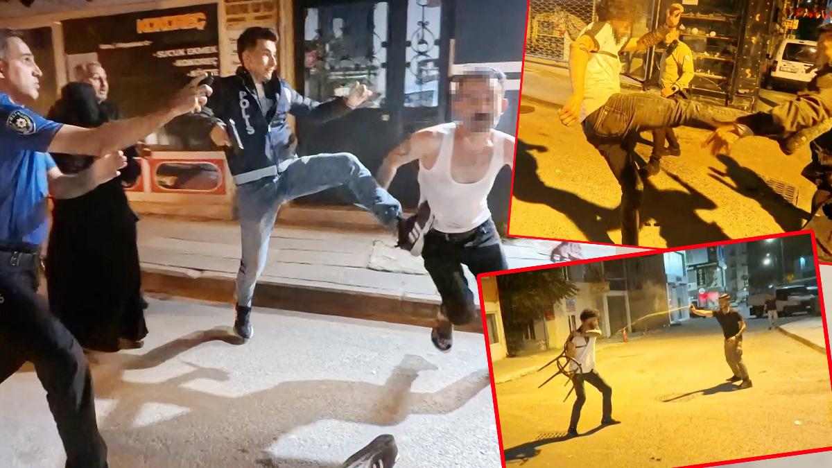 Mustafa A. elindeki sandalye ile polis memurunun koluna vurup yaralarken, babası Ali A. ise elindeki bıçakla önce çevredeki vatandaşlara, sonra da polis memuruna saldırdı.