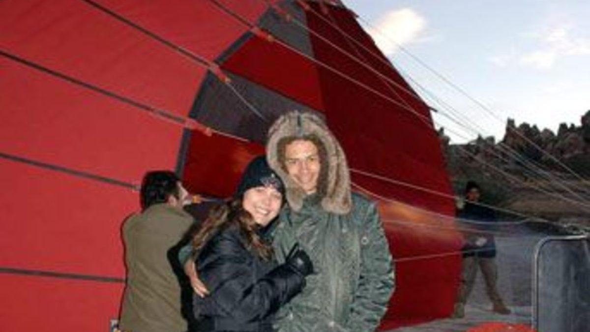 Bölgedeki sıcak hava balon turları hakkında pilot Abdullah Uluer'den bilgi alan Alex, balonların önünde eşi ile birlikte hatıra fotoğrafı çektirirken pilot Abdulllah Uluer tarafından kendisine çeşitli hediyeler verildi.