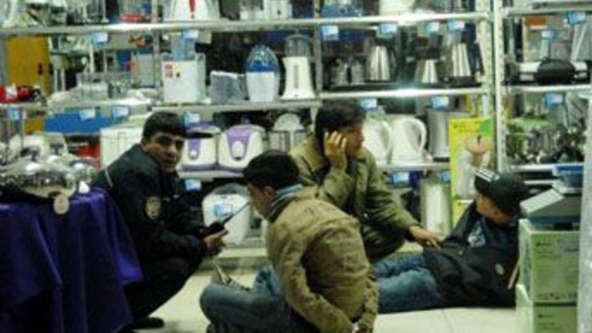 Mağaza müdürü gecikince, polisler mağaza içindeki zanlıların kimlik kontrollerini ve üst aramasını yaptı. Yaklaşık 40 dakika sonra mağaza müdürü Şen'in gelip, kapıyı açmasıyla polis, zanlıları çıkardı. Zanlılardan İbrahim El, bir gazetecinin `Neden mağazaya girdiniz?' sorusuna, "Kafamız iyiydi. Uyumak için mağazaya girdik" yanıtını verdi.