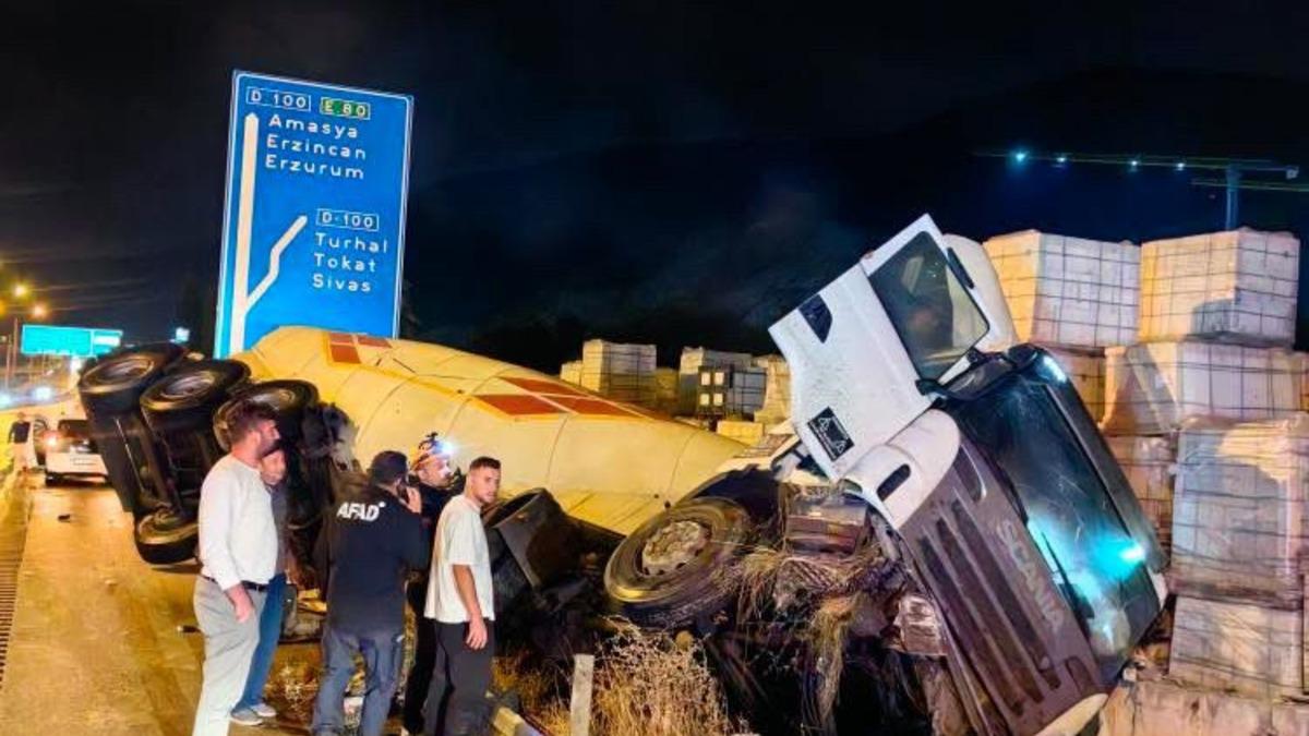 Beşgöz mevkisinde, Suluova ilçesinden Amasya yönüne giden tanker, yağışlı hava nedeniyle kontrolden çıktı. Tanker, bariyerlere çarparak devrildi.