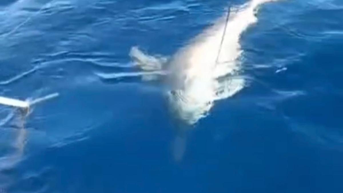 Hatay’ın Yayladağı ilçesinde denize açılan amatör balıkçının oltasına köpek balığı takıldı. Olta ipi kesilerek köpek balığı tekrar denize bırakıldı.