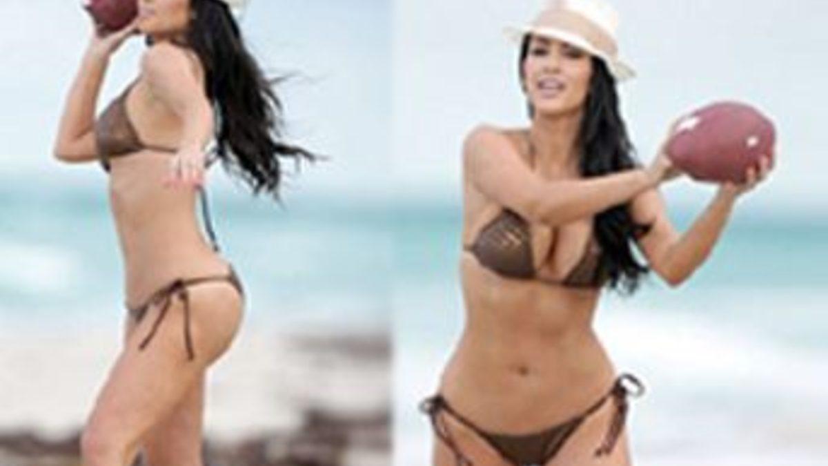 Son dönemlerde aldığı kilolar ve şekli bozulduğu belirtilen kalçasıyla gündeme gelen sosyetik güzel Kim Kardashian, eski formuna kavuşmuş gibi görünüyor. Kim, bikinisi ve tüm seksiliğiyle plajda Amerikan futbolu oynarken görüldü...
