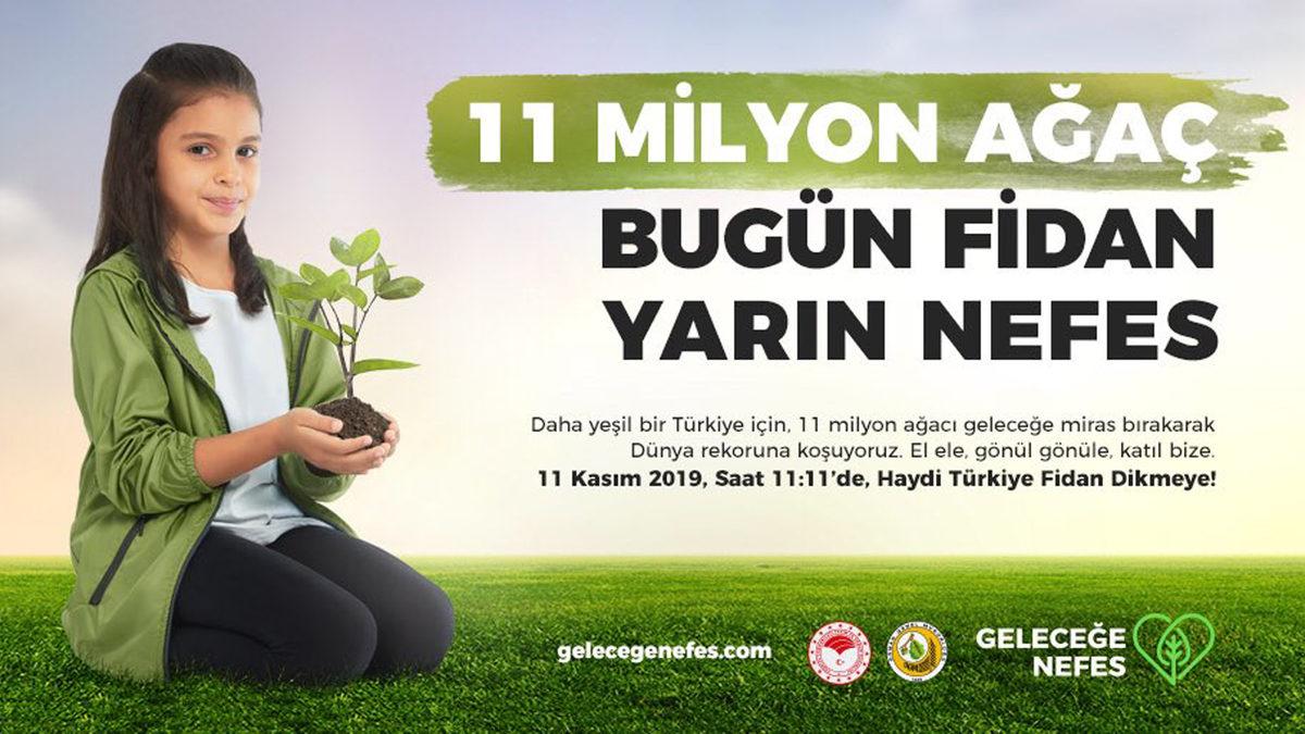 TARIM ve Orman Bakanlığı'nca 'Geleceğe nefes' sloganıyla 81 ildeki 2 bin 23 noktada başlatılan 11 milyon fidan dikimi kampanyası, 4 Kasım itibarıyla aşıldı.