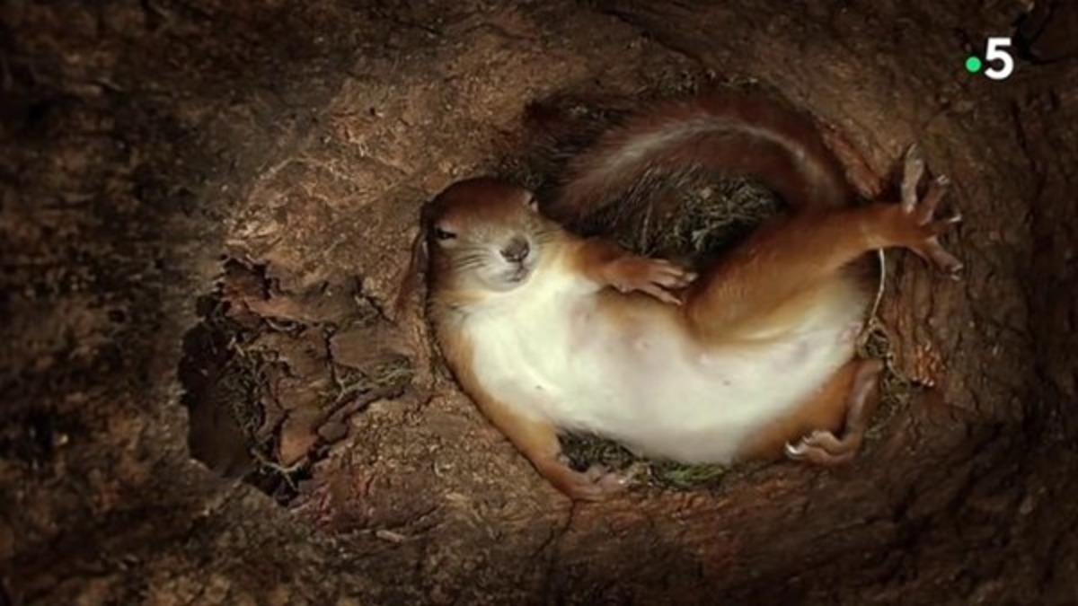 Doğa belgeselcileri de bir sincabın yuvasına yerleştirdikleri kamerayla sincabın doğum yaptığı anları görüntüledi.