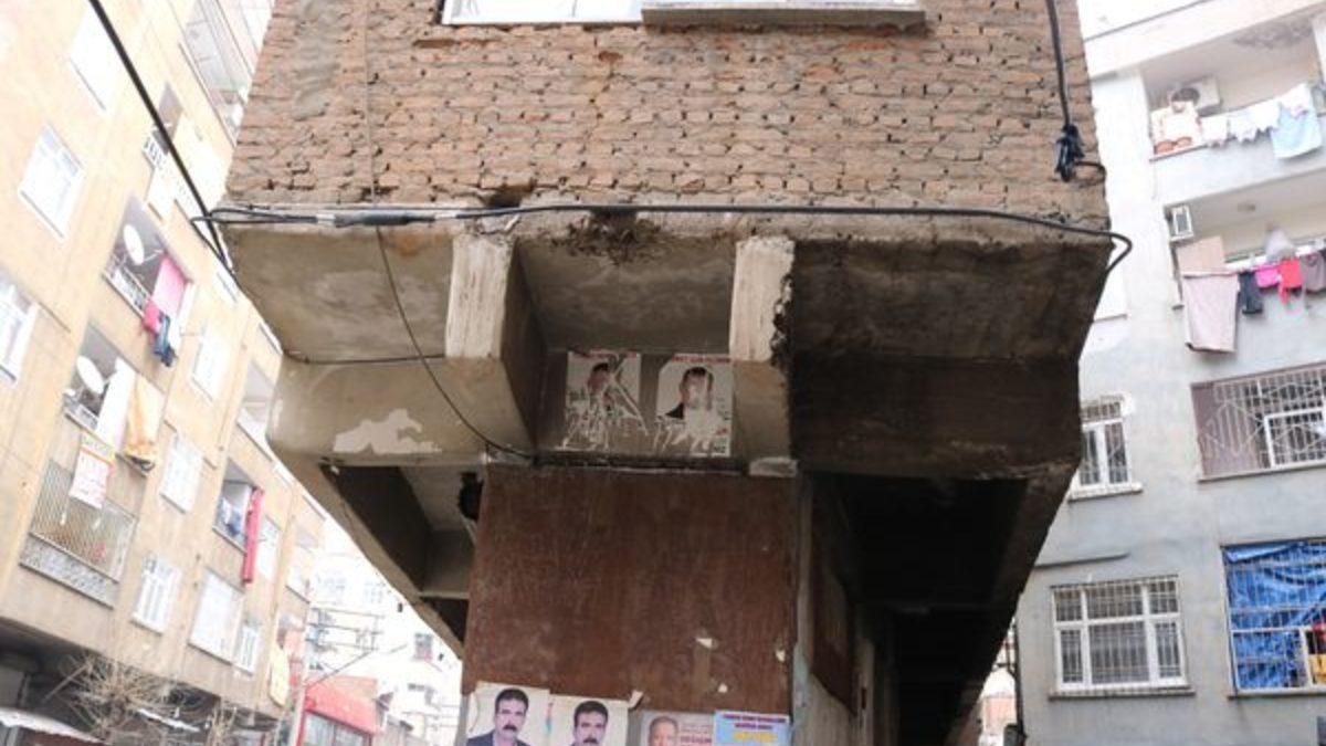 Bağlar ilçesi Yunus Emre Mahallesi Kardeşlik Caddesi üzerinde bulunan ve 1990'lı yılların başında inşa edilen apartman, görenleri hayretler içinde bırakıyor. En son Elazığ'ın Sivrice ilçesinde meydana gelen ve Diyarbakır'dan da şiddetli bir şekilde hissedilen 6.8 büyüklüğündeki depremden de herhangi bir hasar almadan ayakta durmayı başaran isimsiz binada iki aile yaşıyor. İki esnafın da iş yaptığı bina doğal afetlere meydan okuyor.