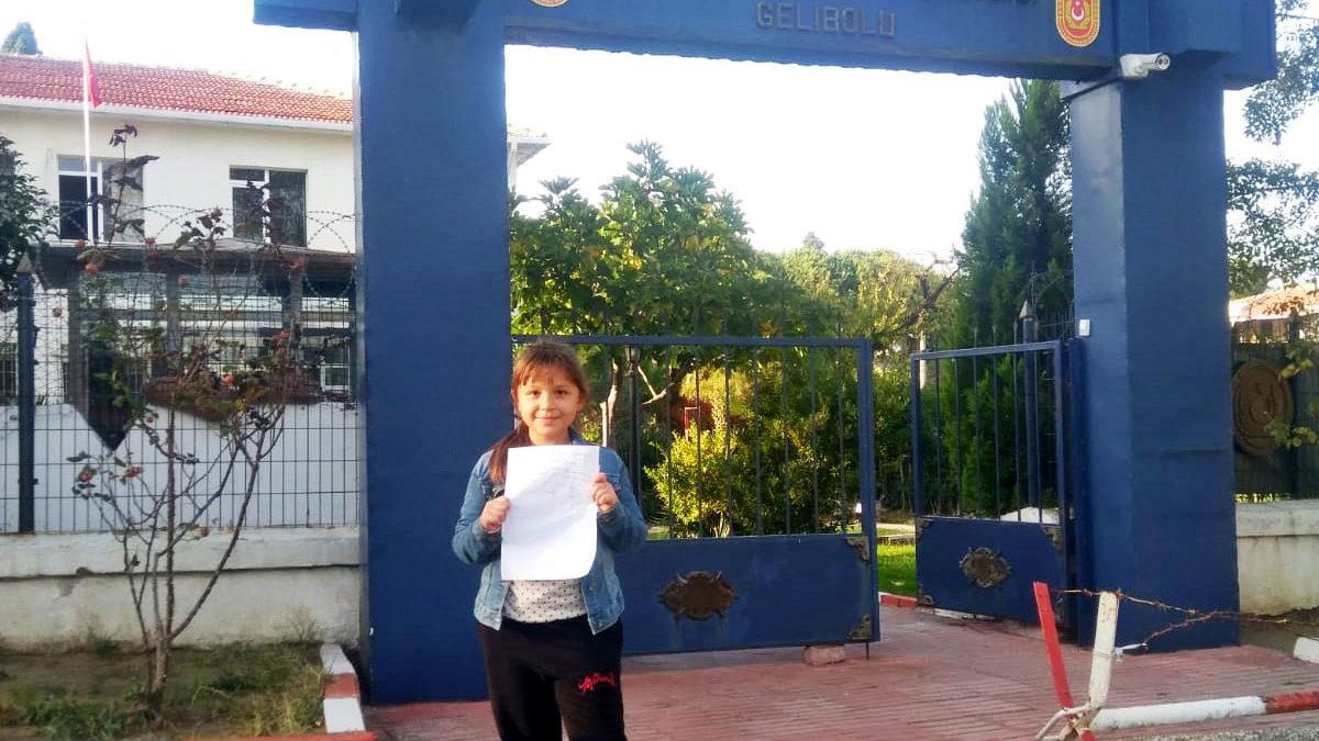 ÇANAKKALE'nin Gelibolu ilçesinde 26 Kasım İlkokulu 2-A sınıfı öğrencisi Aybilge Çardak (8), askere gitmek için dilekçe verdi.