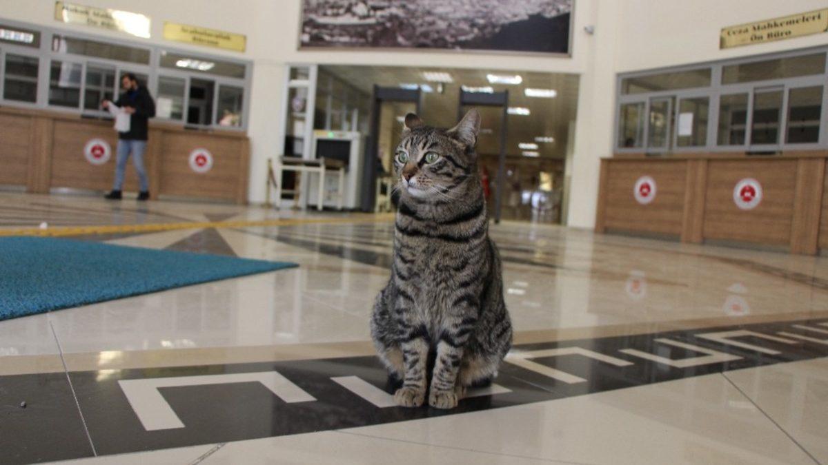 Yaklaşık 3 ay önce kapısından içeri girdiği Amasya Adalet Sarayı’nda çalışanlarla avukatlara kendini sevdiren kedi, o günden bu yana günün büyük bölümünü binada geçiriyor. Koridorları dolaşıp koltuklarda uyuyan kedi, duruşma salonlarına bile giriyor.