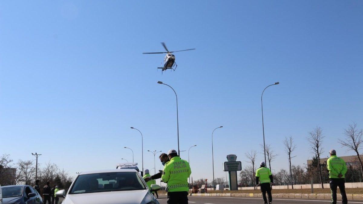 Aksaray’da helikopter destekli trafik uygulaması