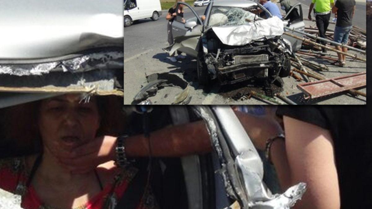 Çarpmanın şiddetiyle, kamyonetin kasasında bulunan iskele demirleri H.U.’nun kullandığı otomobilin üzerine ve etrafına düştü.