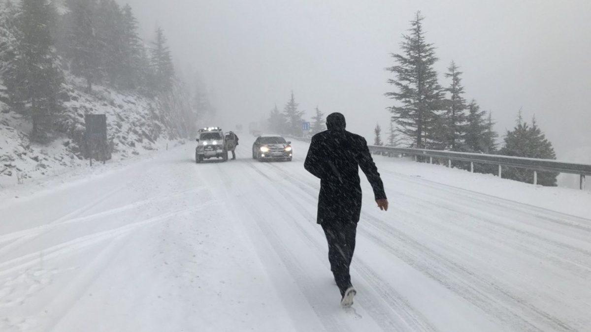 Antalya-Konya karayolunda yoğun kar yağışı