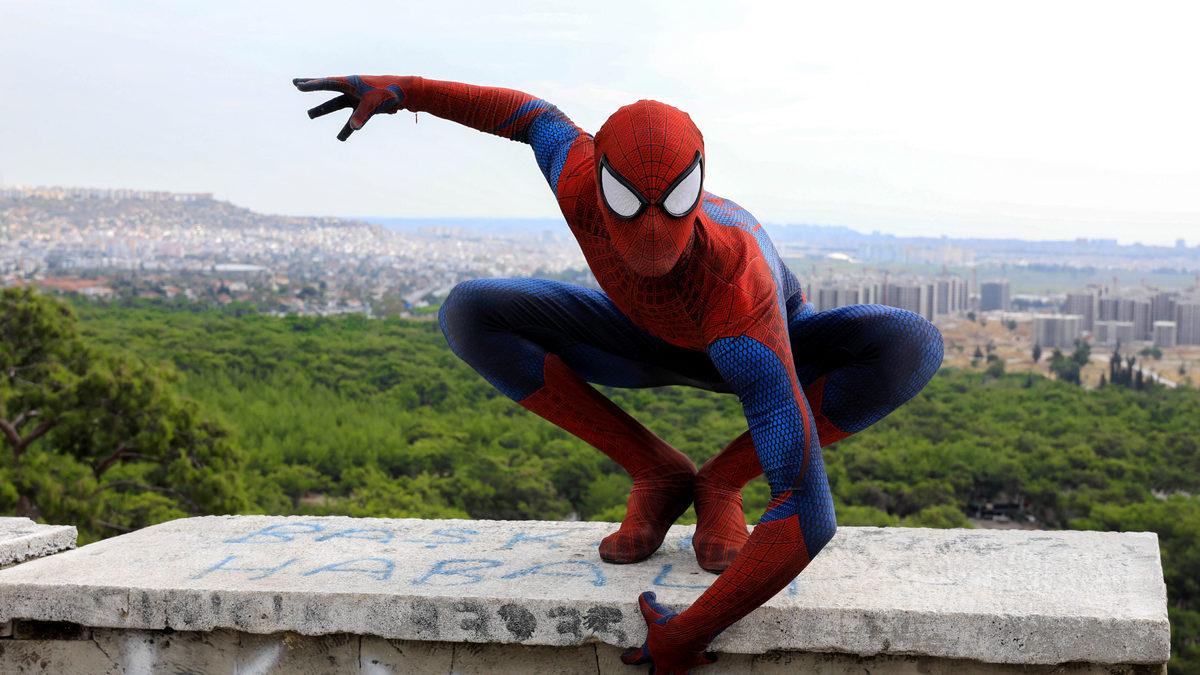 Antalyalı 'Spiderman', ekmeğini kostümünden kazanıyor