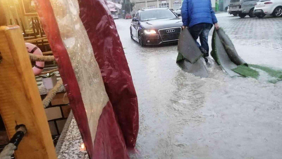 Artvin’in Arhavi ilçesinde etkili olan sağanak yağış su taşkınlarına neden oldu.