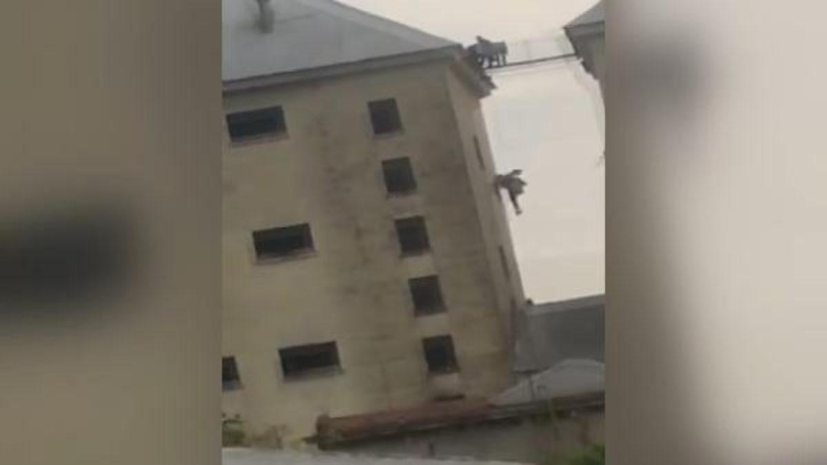 Koronavirüs nedeniyle cezasının ev hapsine çevrilmesini isteyen bir mahkum ise çatıdan düştü. O anlar amatör kamera tarafından kayda alındı. Mahkumun sağlık durumuna ilişkin ise bir açıklama ise yapılmadı.Hapishanenin çatısına çıkan 40'tan fazla mahkum, üzerinde "Hapishanede ölmeyi reddediyoruz" yazılı pankart astı.