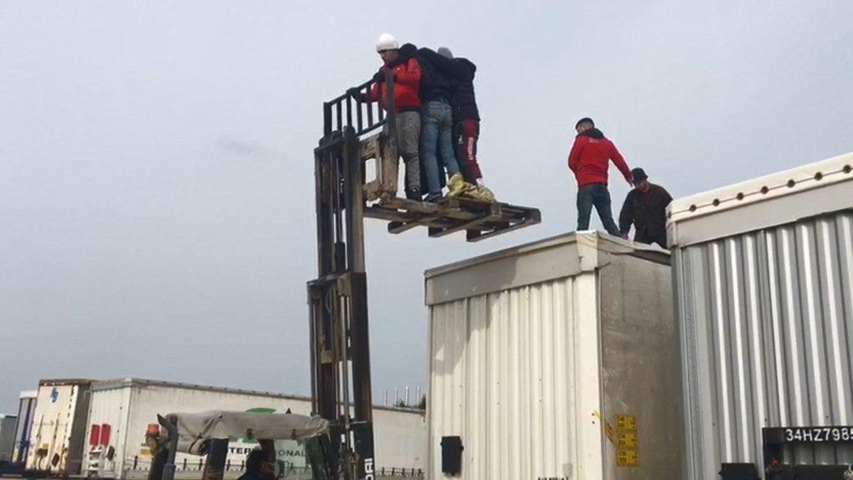 Avrupa’ya kaçmak için dorsede sabahlayan göçmenler forkliftle böyle çıkarıldı