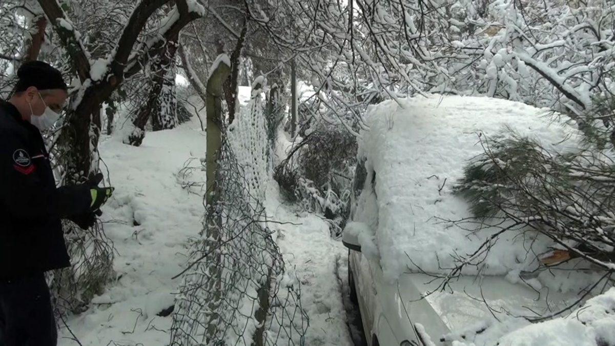 İstanbul Beşiktaş’ta yoğun kar yağışı sonrası devrilen ağaçlar ve kopan dal parçaları park halindeki 4 araca zarar verdi.