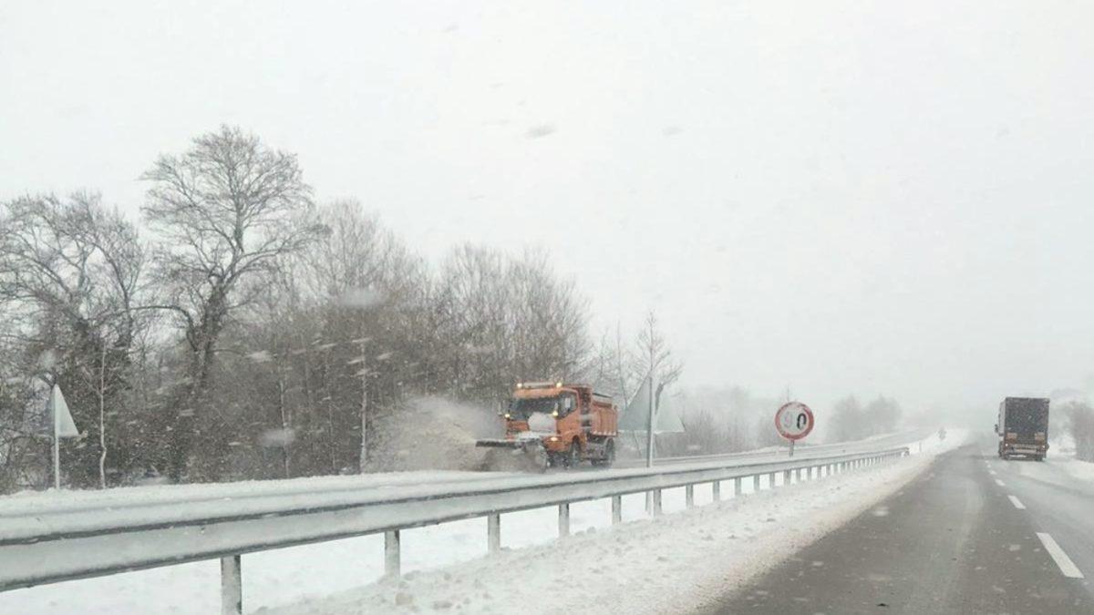Biga’da yoğun kar nedeniyle ağır tonajlı araçlar bekletiliyor
