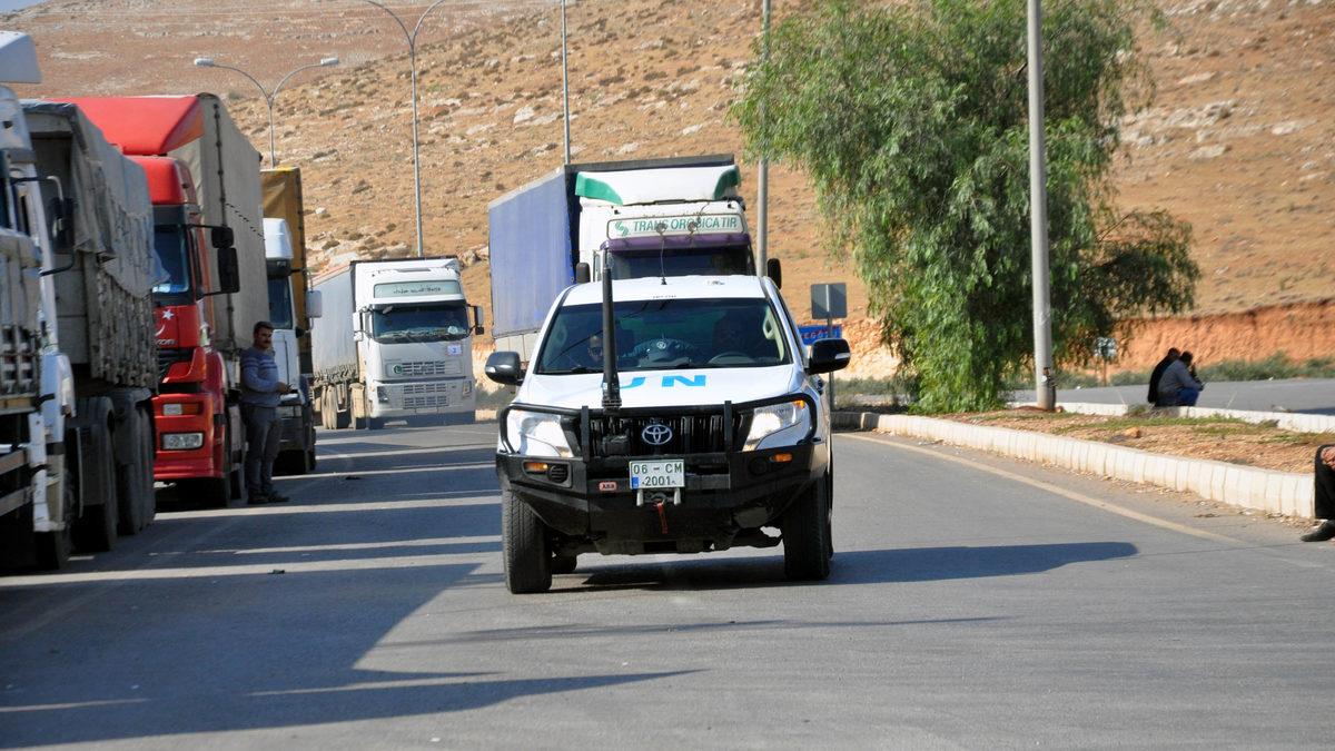 Hatay’ın Reyhanlı ilçesinde bulunan lojistik depolarından yüklenen insani yardım malzemelerini taşıyan TIR’lar jandarma ve BM görevlilerinin eşliğinde Cilvegözü Gümrük Kapısı’na geldi. Buradaki işlemlerin ardından TIR’lar, gümrük sahasına girerek İdlib’e hareket etti. TIR’lardaki insani yardım malzemelerinin İldib ve kırsalında yaşayan Suriyeli sivillere dağıtılacağı belirtildi.