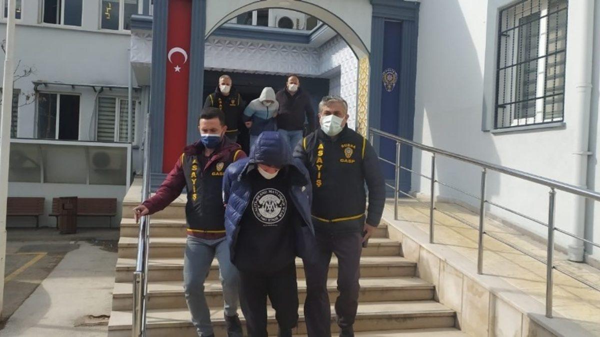 Bursa İl Emniyet Müdürlüğü Asayiş Şube Müdürlüğü Gasp Büro Amirliği ekipleri, 4 ay boyunca inceledikleri güvenlik kameraları sonucunda şüphelileri İstanbul’da bir yakınlarının evinde saklanırken yakalayıp Bursa’ya getirdi. Burada işlemleri tamamlanan şüpheliler, gazetecilere, ’’Ne çekiyorsun lan!’’ ve ’’Canım çekti yaptım’’ dedi.