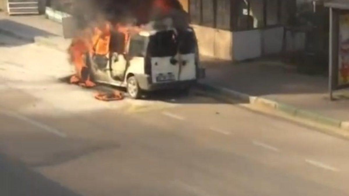 Bursa’da seyir halindeki hafif ticarî araç alev alev yandı