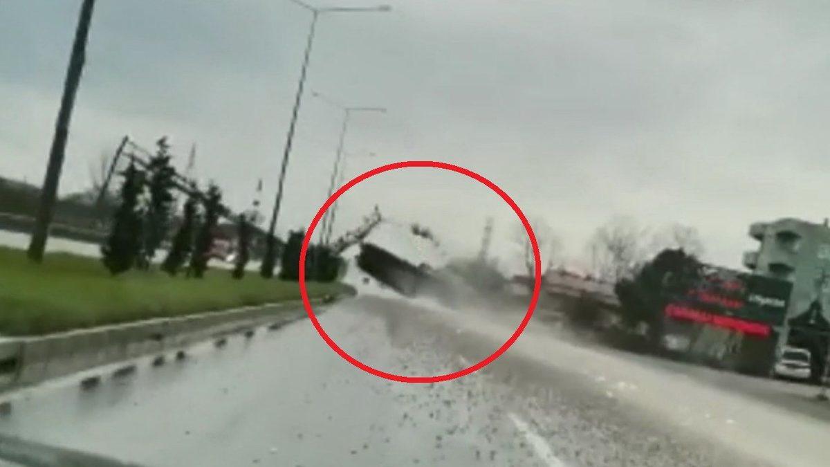Damperi açılan kamyonun PTS’ye çarpma anı kamerada: 1 yaralı