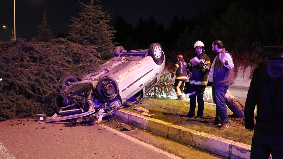 Otomobilin refüjdeki ağaca çarparak devrildiği kazayla ilgili ihbar üzerine olay yerine sağlık, itfaiye ve polis ekipleri sevk edildi.