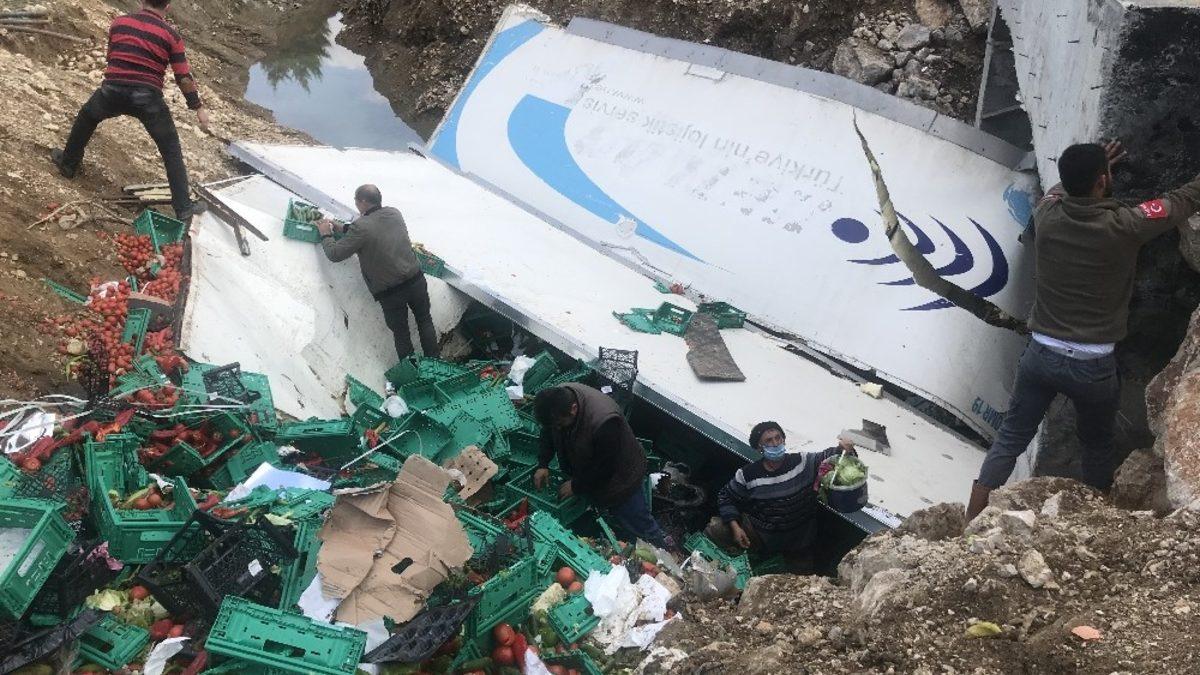 Antalya’da kontrolden çıkarak devrilen ve sürücüsü hayatını kaybeden tırda bulunan sebze ve meyveler vatandaşlar tarafından kapışıldı.