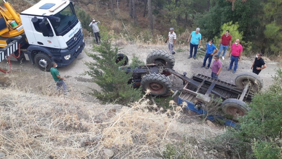 Antalya’nın Kemer ilçesinde Yayla yolunda arazisine kayrak kumu taşıyan adam yokuşta geri kayarak devrilen traktörünün altında kalarak hayatını kaybetti.