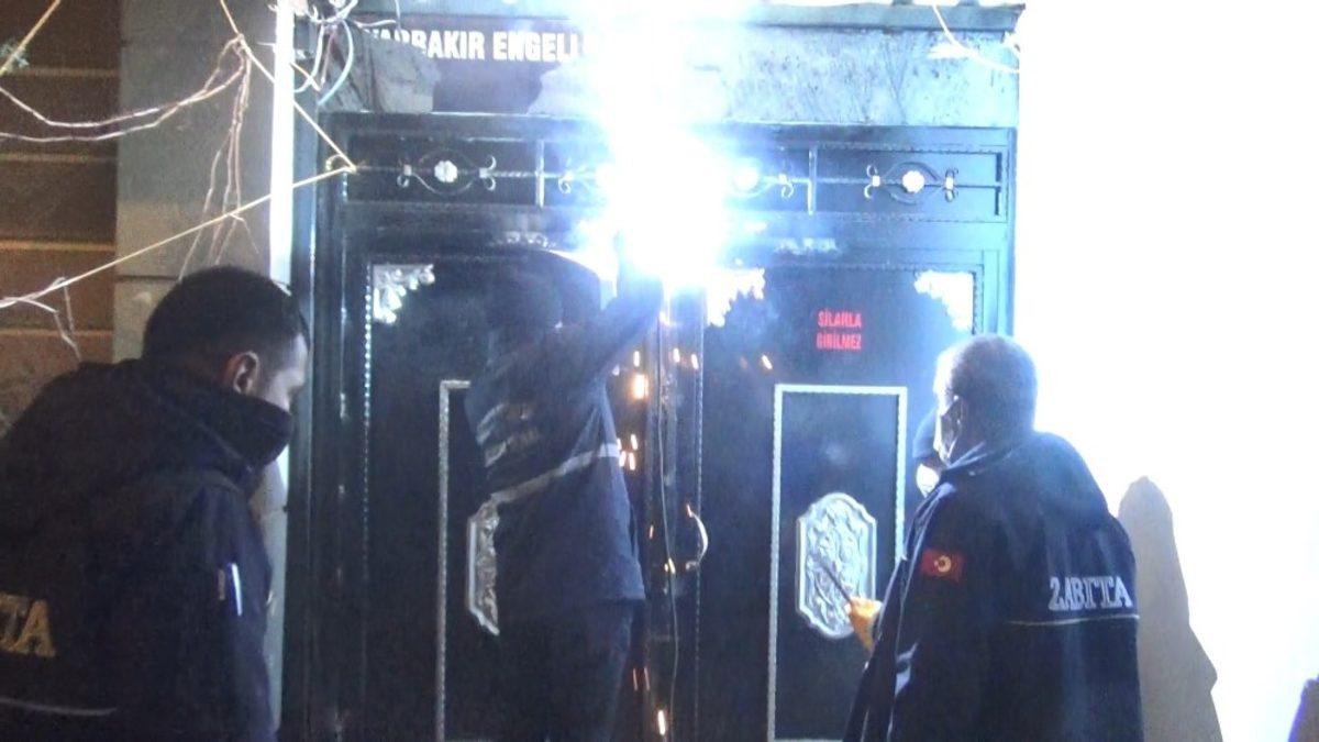 Diyarbakır’da kısıtlama saatinde bir engelli derneğinde 9’uncu kez alkollü eğlence yapıldığı ihbarı alan polis zabıta ekipleri belirlenen adrese operasyon düzenledi. Kısıtlama saatinde 9’uncu kez düzenlenen baskında yine aynı manzaralar ortaya çıkarken, aralarında kadınlarında olduğu 42 kişiye 132 bin 300 TL ceza kesilerek kapısı kaynak makinasıyla kaynak yapıldıktan sonra mühürlendi.