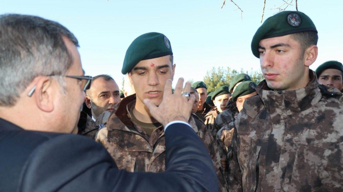 Diyarbakır’da oryantasyon eğitimlerini tamamlayan özel harekat polisleri kesilen kurbanlardan akan kanı alınlarına sürerek görev emirlerini beklemeye başladı.