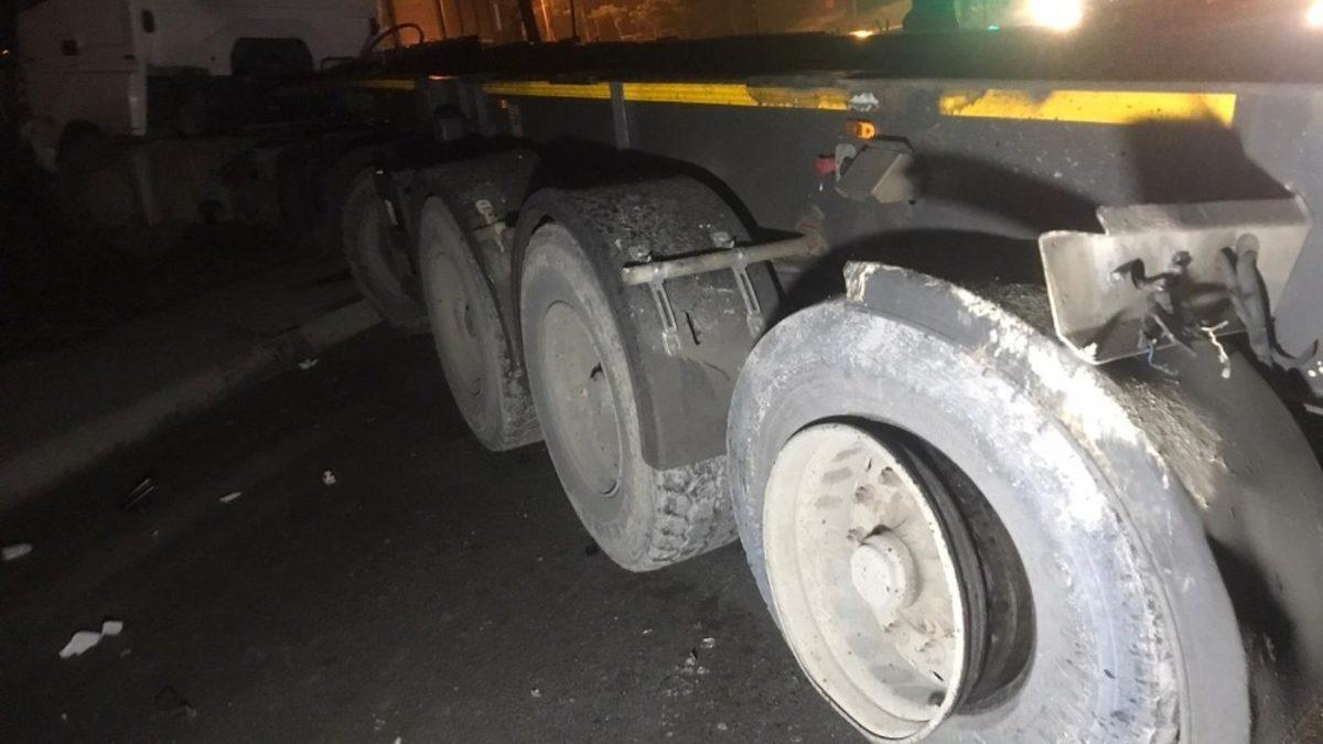 Dorsesi üst geçide çarpan hafriyat kamyonu karşı şeritten gelen araca çarptı: 2 yaralı