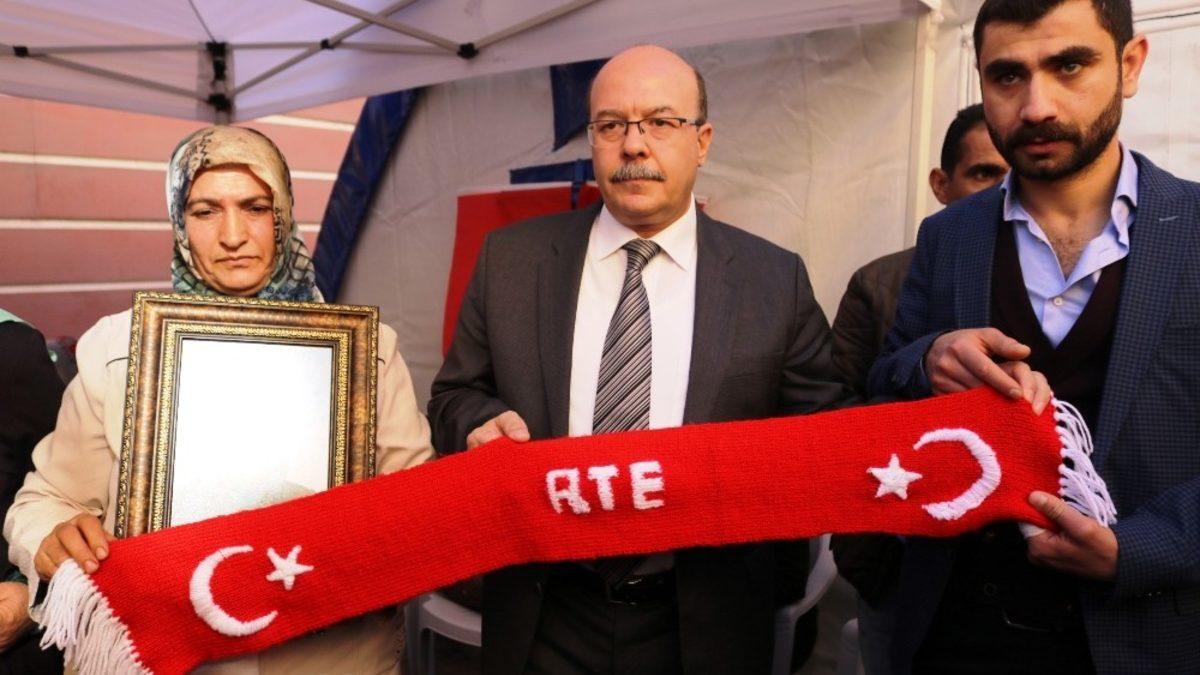Evlat nöbetindeki aileler Cumhurbaşkanı için ördükleri atkıyı teslim etti