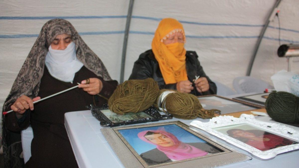 Çocuklarının terör örgütü PKK mensupları tarafından dağa kaçırıldığı iddiasıyla HDP Diyarbakır İl Başkanlığı önünde oturma eylemi başlatan aileler, başta Barış Pınarı Harekatı’nda görev yapan Mehmetçiklere atkı ördü.