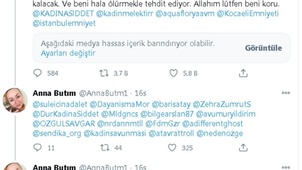 Sosyal medyada Anna Butım ismini kullanan kadın, sosyal medya hesabından yaptığı paylaşımda ayrılmak istediği eşi tarafından falçatalı saldırıya uğradığını iddia etti. Hakkında uzaklaştırma kararı bulunan eşinin Bakirköy’de bir alışveriş merkezinde kendisine falçata ile saldırdığını kaydeden kadın, yüzünün parçalanmış halini sosyal medyadan paylaştı. Saldırıya uğrayan kadının yüzünün felç kaldığının belirtildiği paylaşımda, şahsın ölüm tehditlerine devam ettiği iddia edildi. Saldırıya uğrayan kadının yüzünü paylaştığı fotoğraflar görenleri dehşete düşürdü.