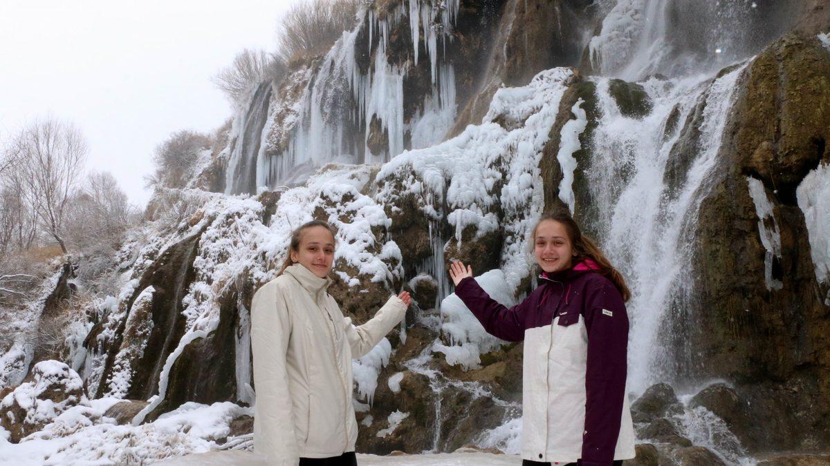 ERZİNCAN'ın ünlü Girlevik Şelalesi aşırı soğuklar nedeniyle dondu.