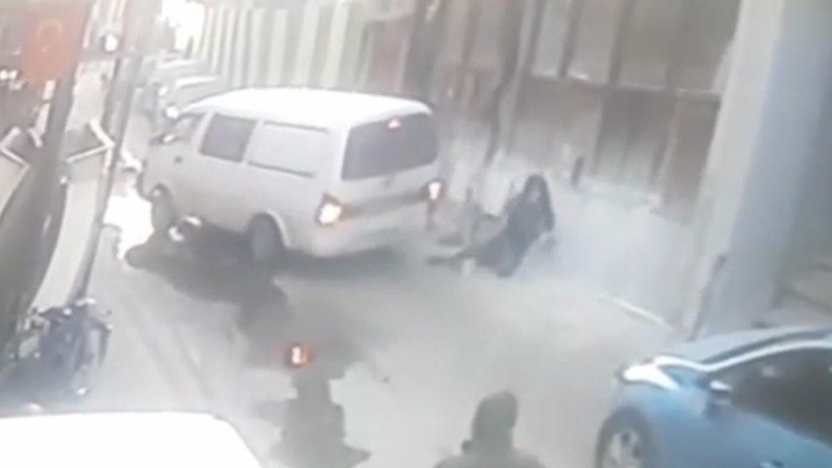 Adam, çarpmanın etkisiyle yere düştü. Ancak genç adam saniyeler içinden yeniden kalktı.