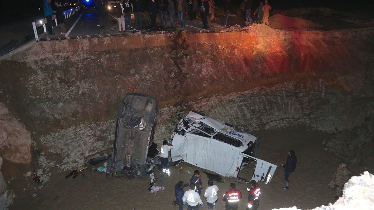 Bayburt'ta otomobil ve minibüsün menfez inşaatı için açılan çukura düşmesi sonucu 8 kişi öldü, 4 kişi yaralandı.