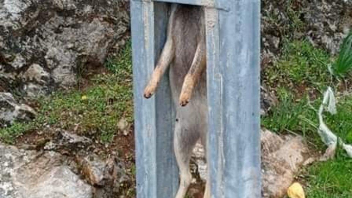 Hamile tilkiyi öldürüp direğe astılar