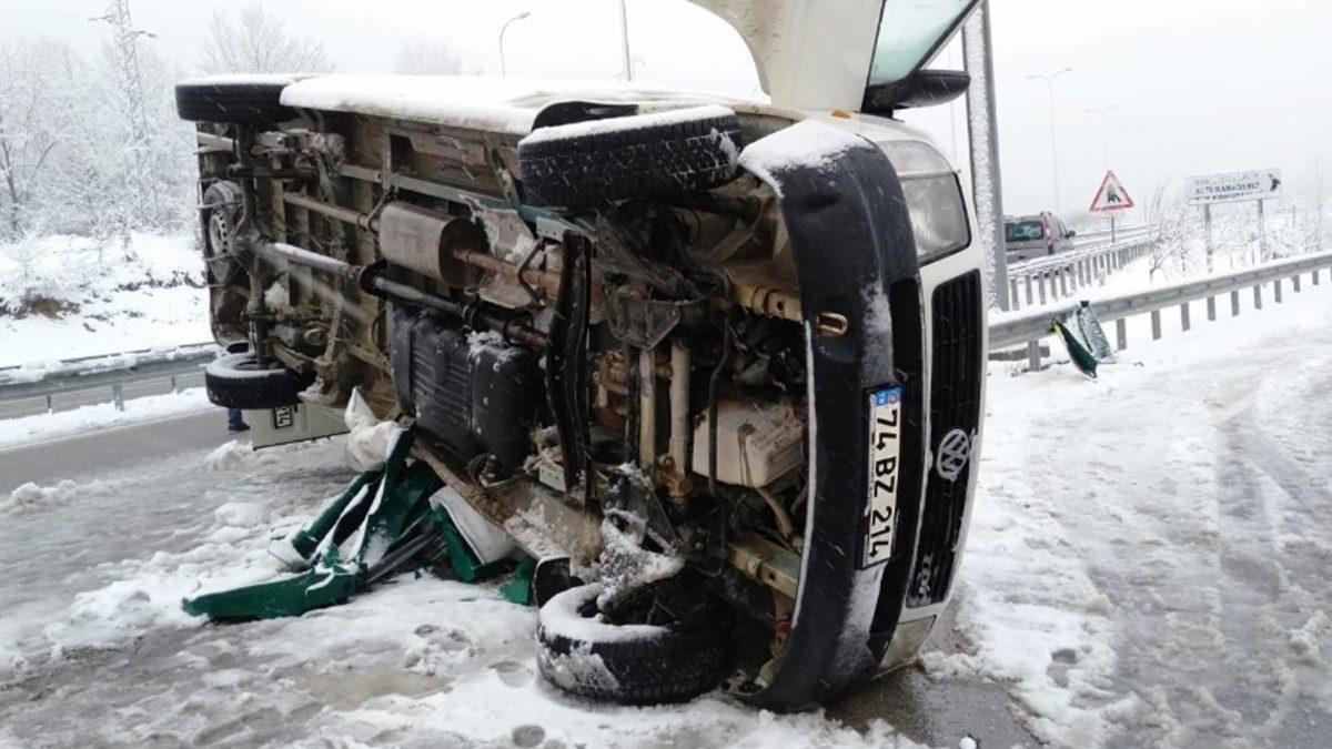Kaza, Bartın Kurucaşile karayolunun Bostanlar mevkiinde meydana geldi. Kurucaşile ilçesinde devam eden tünel inşaatında çalışan işçileri taşıyan 74 BZ 214 plakalı servis minibüsü kar yağışının etkili olduğu Bostanlar mevkiindeki Amasra yol ayrımında sürücüsünün kontrolünden çıkarak devrildi. Kazada şoför Sabahattin Kara(52) ve 10 işçi yaralandı. Yaralılar 112 ekiplerince ilk müdahalelerinin ardından ambulanslarla Bartın Devlet Hastanesine kaldırıldılar.
