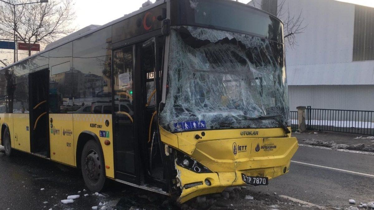 Sancaktepe’de İETT otobüsü ile servis minibüsü çarpıştı.